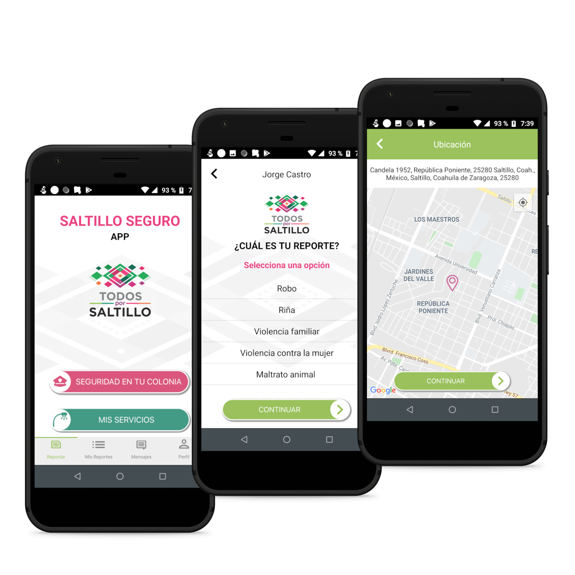 Saltillo Seguro es una plataforma para que los ciudadanos puedan reportar en menos de 1 minuto cualquier situación de riesgo o falta de servicios básicos. Estos reportes son atendidos inmediatamente por el Centro de Control y Comando. La ciudad de Saltillo se encuentra en la lista de ciudades con menor percepción de inseguridad