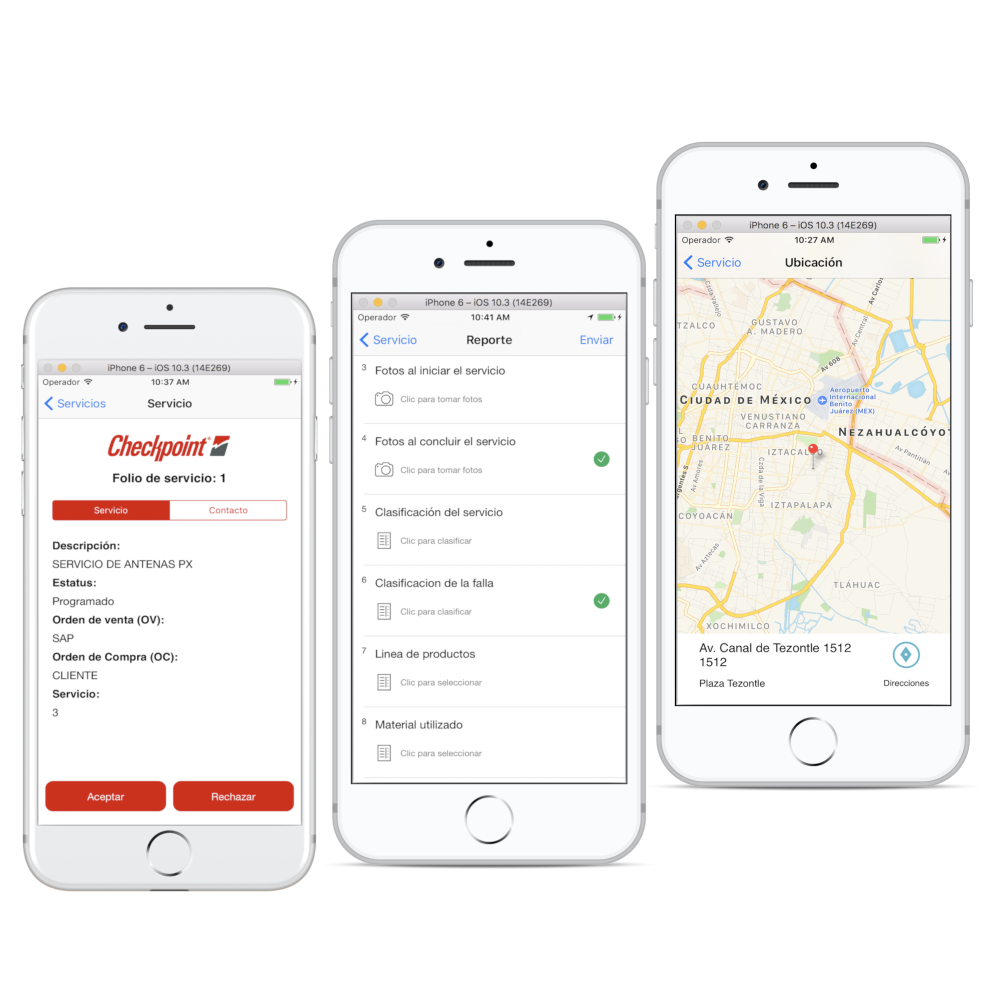 Checkpoint es una app para Checkpoint Systems de uso interno que funciona para llevar un control de calidad de las antenas RF-RFID (https://checkpointsystems.com/mx/products/RF-RFID-Antennas) donde el cliente puede reportar fallas para que se asigne un servicio de mantenimiento al técnico mas cercano avisándole con una notificación. Con ayuda de la app, el técnico realiza un reporte del servicio que incluye fotos, equipo y material utilizado, coordenadas del GPS, encuesta de calidad y firma del cliente. Esta app reemplazó el uso de papel para el llenado de los reportes.